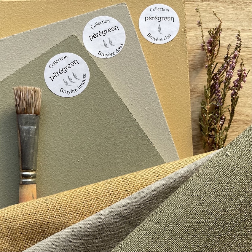 En 2018, elle donne un nom à cette quête : Pérégreen, un atelier-studio Couleur indépendant, installé à Toucy, au cœur de la Puisaye. Les choix éco-responsables structurent chaque développement : techniques respectueuses de la nature et de la santé, transposition des teintes sur tissu avec des peintures ou matériaux biosourcés.