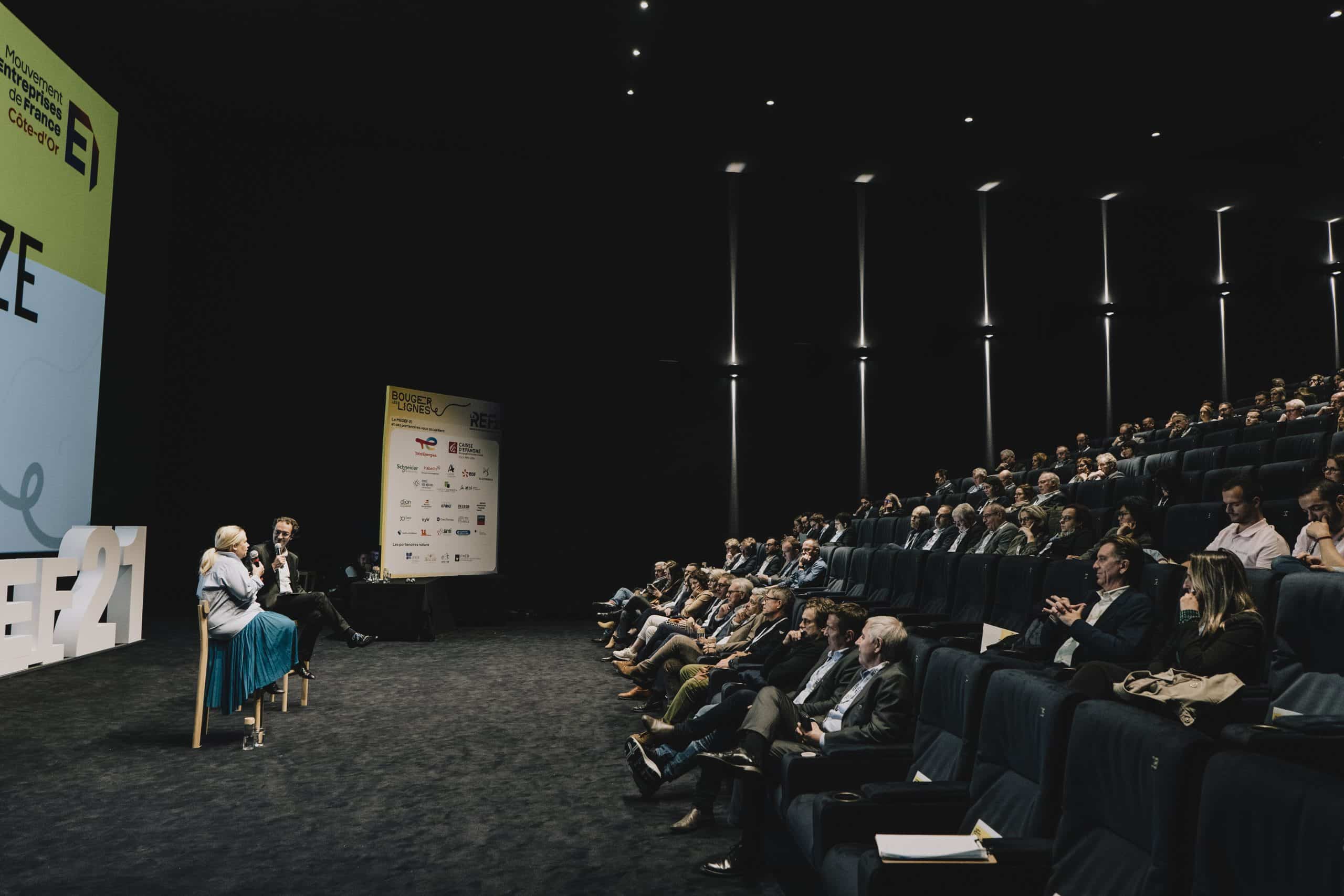 Nous ne résistions pas à l’idée d’attendre la sortie du prochain numéro pour vous montrer en avant-première les photos prises lors de la REF 21. Le 29 septembre dernier, Le Mouvement des Entreprises de France Côte-d’Or a en effet organisé sa célèbre Rencontre des entrepreneurs de France (ex-université d’été) à la Cité Internationale de la Gastronomie et du Vin de Dijon. Pour l’occasion, près de 500 chefs d’entreprise de la région étaient réunis dans le nouveau Cinéma Pathé Dijon pour écouter les paroles d’acteurs de notre hexagone – et de notre région – qui font « bouger les lignes ».